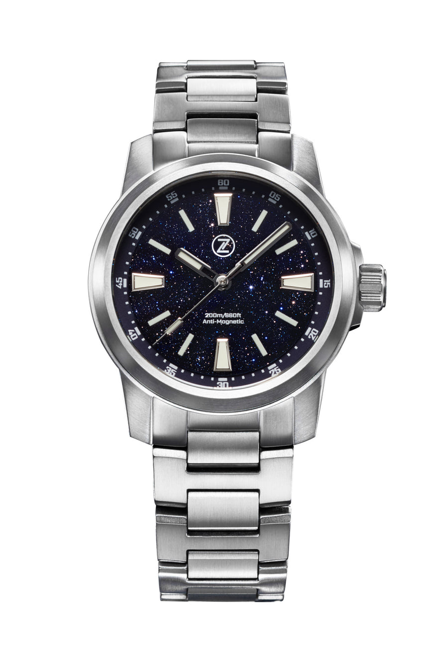 The Zelos Aurora Field 38mm Ti Aventurine is an exciting all-round watch that is suitable for nearly any occasion. Zelos is renown for making watches with incredible value for money and impressive specifications. This Aurora is no different! Let's start with the basics: It with a fully titanium case and bracelet (Grade2 Titanium witrh 1200HV coating) and is fitted sapphire glass, great lume (C3), 200m water resistance and a solid bracelet with 20mm diameter at the case (lugs).