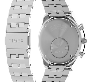 Q Timex Chronograph. Inspired by the original motoring watches that graced the tracks of Europe’s most iconic races, this timepiece celebrates the endurance of our legendary 1970s Q Timex. An ultra-precise chronograph movement and black tachymeter bezel recreate the finesse and function of a true racing watch, allowing you to determine elapsed time and average speed like the greatest daredevils in motorsports. Contrasting sub-dials, a date feature, hand-applied dimensional indices, and an updated Q Timex logo smolder against a jet-black dial, while a brushed and polished stainless-steel case and crown bring dynamism and durability to its retro construction. Infinitely wearable, an adjustable stainless-steel bracelet makes for a sporty presentation that’s ready to hit the road whenever you are.