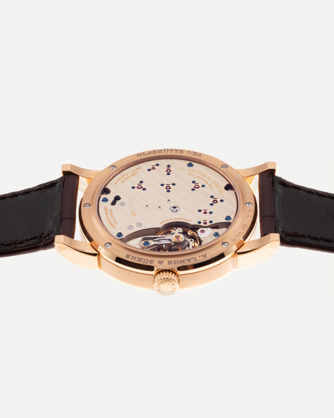 It is the classic in the Lange collection. With its inimitable dial design and its outsize date, the LANGE 1 inspired the entire watch industry with fresh impetus. The model version in pink gold features an argenté-coloured dial crafted from solid silver