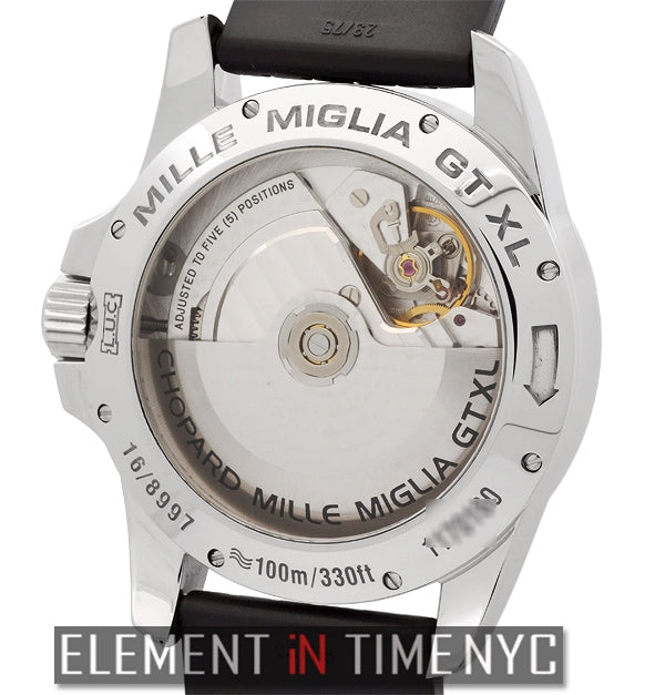 The Chopard Mille Miglia Gran Turismo XL is part of Chopard's iconic collection that pays tribute to the legendary Mille Miglia car race in Italy. This particular model features a large and bold case with clean lines and a distinctive sporty look. The rubber strap, with its tire tread pattern, further emphasizes the automotive connection.
