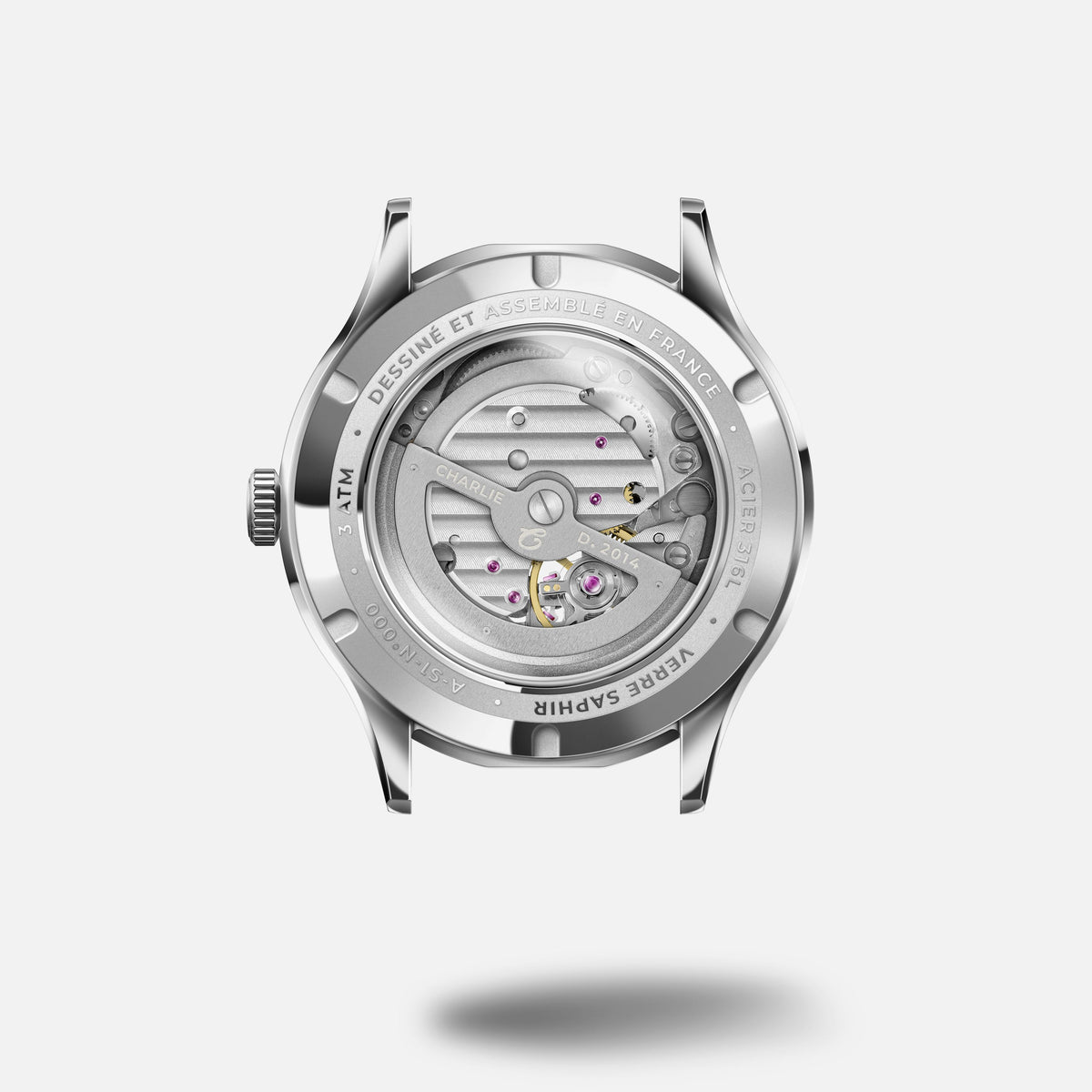 Designed and assembled in France, the Initial Open Heart sunray green dial features clean lines and a classic yet contemporary design. This men's automatic watch reveals the workings of its Citizen Miyota Calibre 82S7 movement for a perfect balance between timeless beauty and watchmaking mechanics. With its 40mm-diameter 316L steel case, sapphire crystal and interchangeable bracelets, it will accompany you for many years to come.