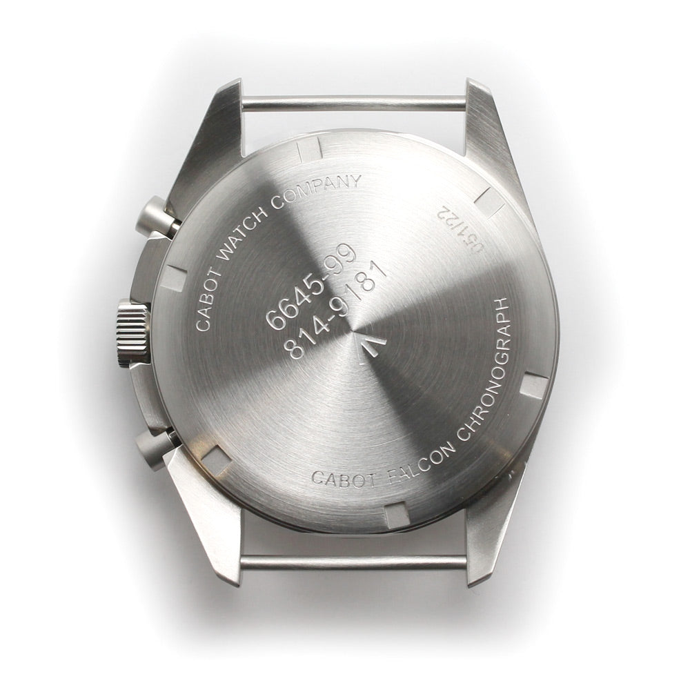 The Cabot Falcon is a modern update of the classic CWC quartz chronograph that was designed and issued to RAF, RN, and BAF pilots in the late 90s and early 2000s. Incorporating a Swiss Ronda chronograph and domed sapphire crystal, along with round pushers and classic asymmetrical design, the Cabot Falcon combines precision and durability with classic style.