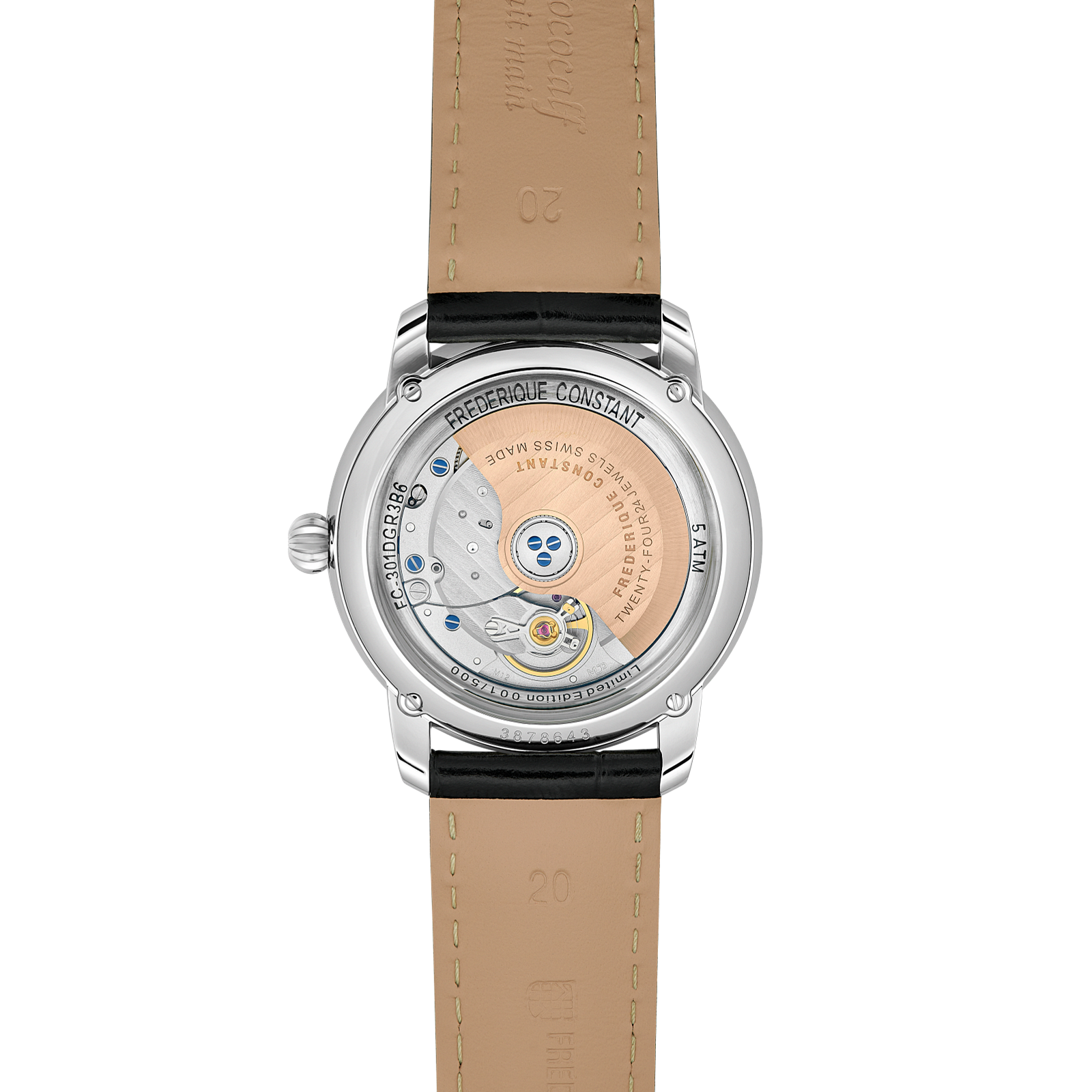 The Frederique Constant Classics Premiere LE-500 is a limited edition timepiece that embodies the brand's commitment to classic elegance and refined craftsmanship. This watch is classified under the Formal/Business style category, characterized by its understated design and high-quality materials. It features an automatic movement with a power reserve of approximately 38 hours, making it suitable for daily wear in professional settings. The watch is intended for individuals who appreciate traditional watchmaking and seek a sophisticated accessory for formal occasions. Its limited production of 500 pieces adds an element of exclusivity, appealing to collectors and enthusiasts who value rarity and heritage.