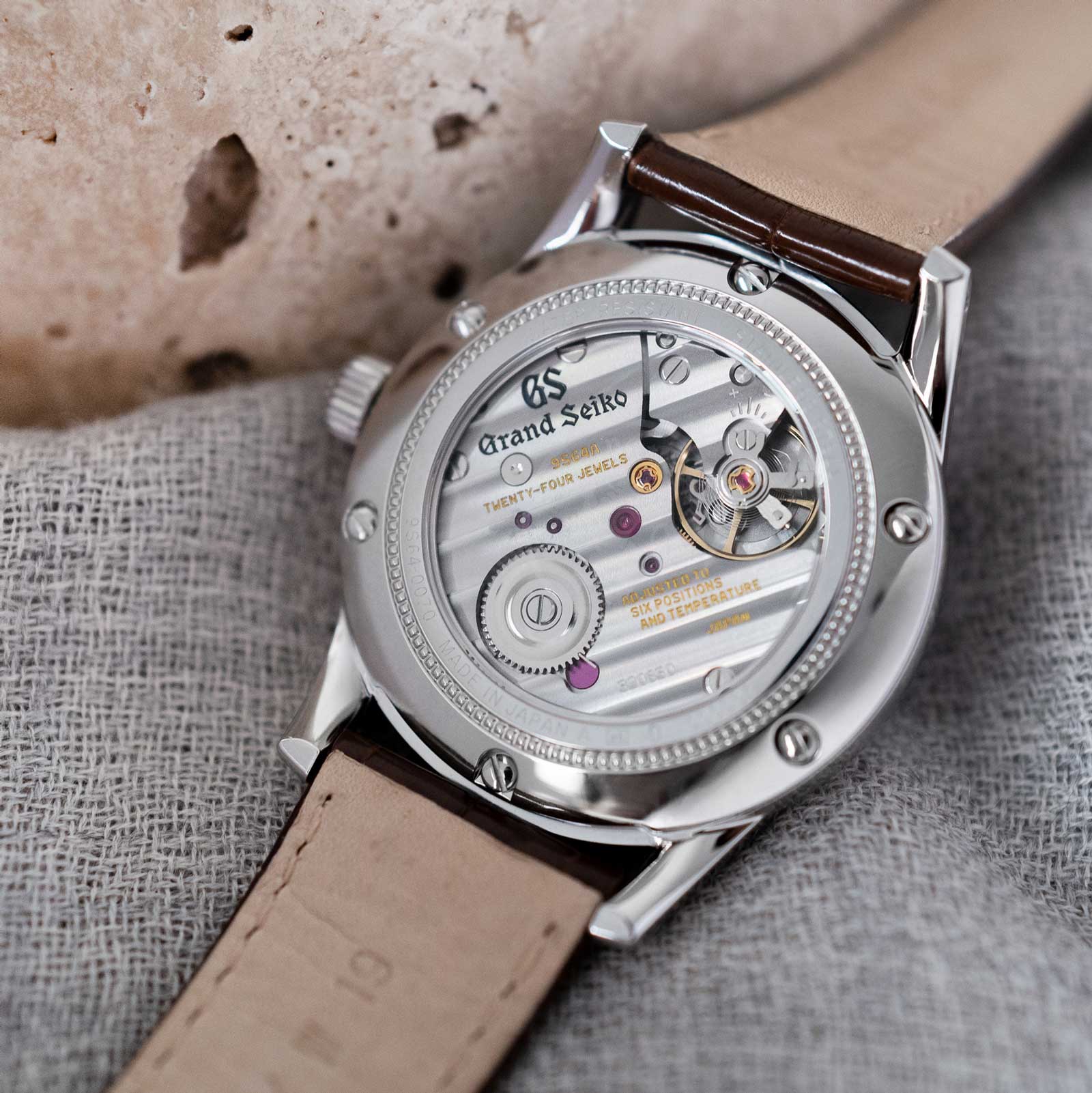 Inside the watch is Grand Seiko’s 9S64 manual-wind caliber, assembled by the highly skilled craftsmen and women of Grand Seiko Studio Shizukuishi. It has 72 hours of power reserve and an accuracy rating of -3 to +5 seconds per day.