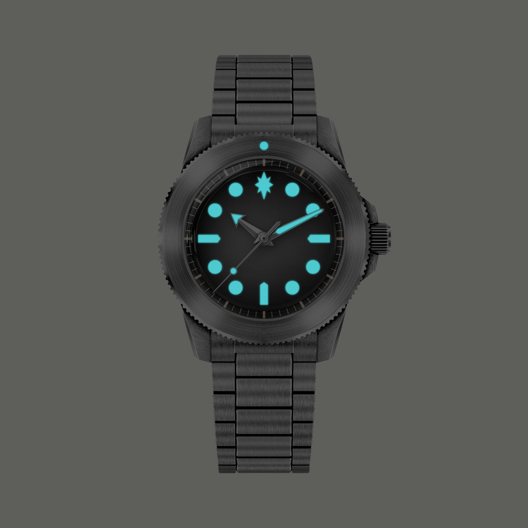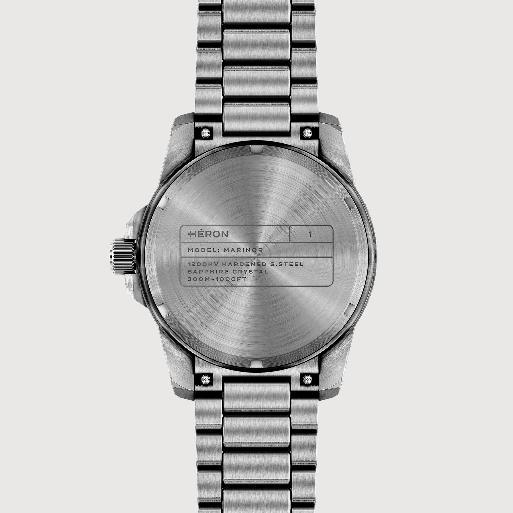 Drawing inspiration from 20th-century military dive watches, the Marinor Ghost revisits signature design elements of the era, such as the intriguing "anonymous dial" and the "sterile rotating bezel." While vintage-inspired, the Marinor is extremely robust, boasting a scratch-resistant steel shell with a sapphire crystal.