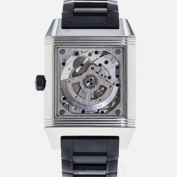 It's the Reverso of the future! The Reverso Squadra Hometime dispenses with much of the Art Deco charm of its predecessors in favor of tool-watch functionality. As its name, Hometime, might suggest, this watch features a GMT function. The stainless steel watch rests on a rubberized bracelet and unlike most Reversos, it features a clear caseback, so even when the dial is turned inward, you are still treated to a show. The case measures 35mm × 41mm and has a seconds sub-dial, a date window at 3 o’clock, and an AM/PM indicator at nine o’clock. A self-winding GMT movement powers this beast of a wristwatch.