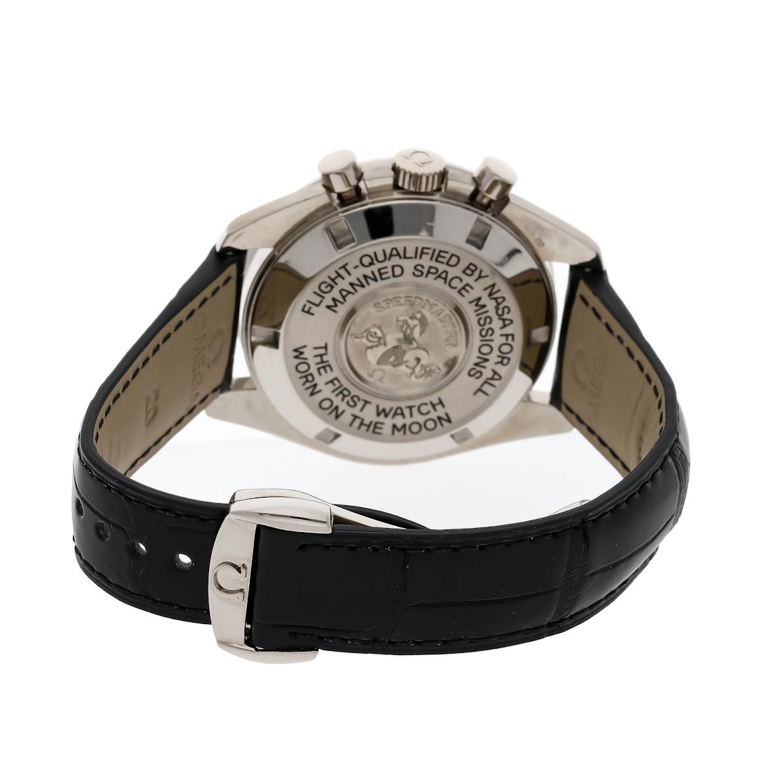 The Omega White Gold Moonphase Speedmaster Model 3689.30.31 is a distinguished timepiece that blends the iconic Speedmaster design with luxurious materials and advanced complications. Classified as a **Formal/Business** watch, it features an elegant white gold case and a sophisticated moonphase complication, making it suitable for formal occasions and collectors alike. This model is powered by an automatic movement, specifically the Omega Caliber 1866, which offers a power reserve of approximately 48 hours. The watch is intended for enthusiasts who appreciate the blend of classic design and horological complexity, with its moonphase and chronograph functions adding to its allure.