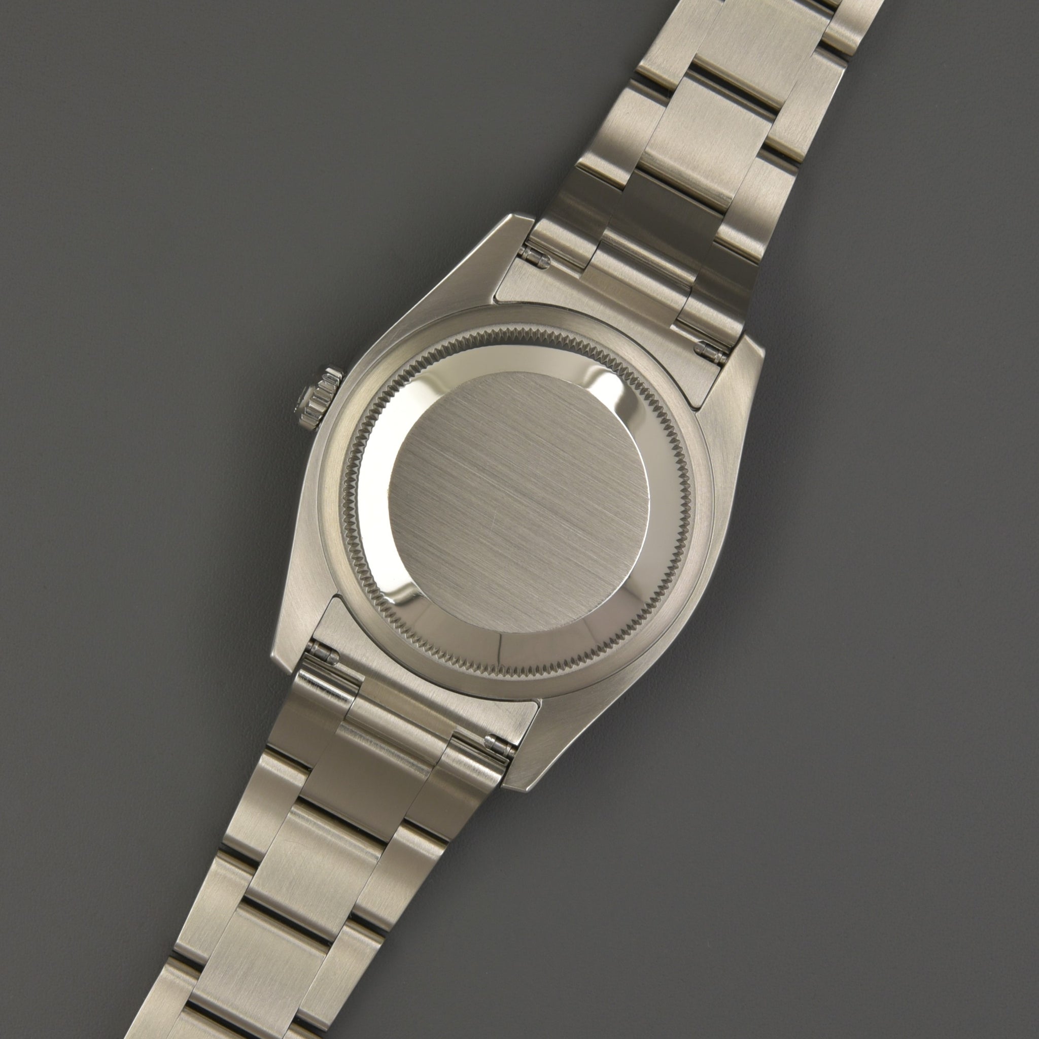 The watch features a date complication, which, while common, is executed with Rolex's signature attention to detail.