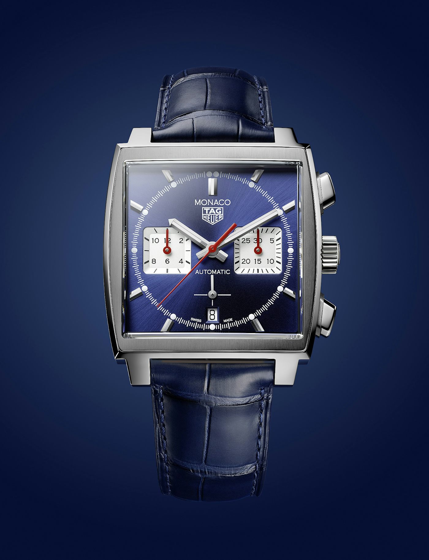 The first Monaco outfitted with an in-house Heuer 02 movement. Vintage, timeless design faithful to the blue, square-faced original Monaco, and packed with 80 hours power reserve.