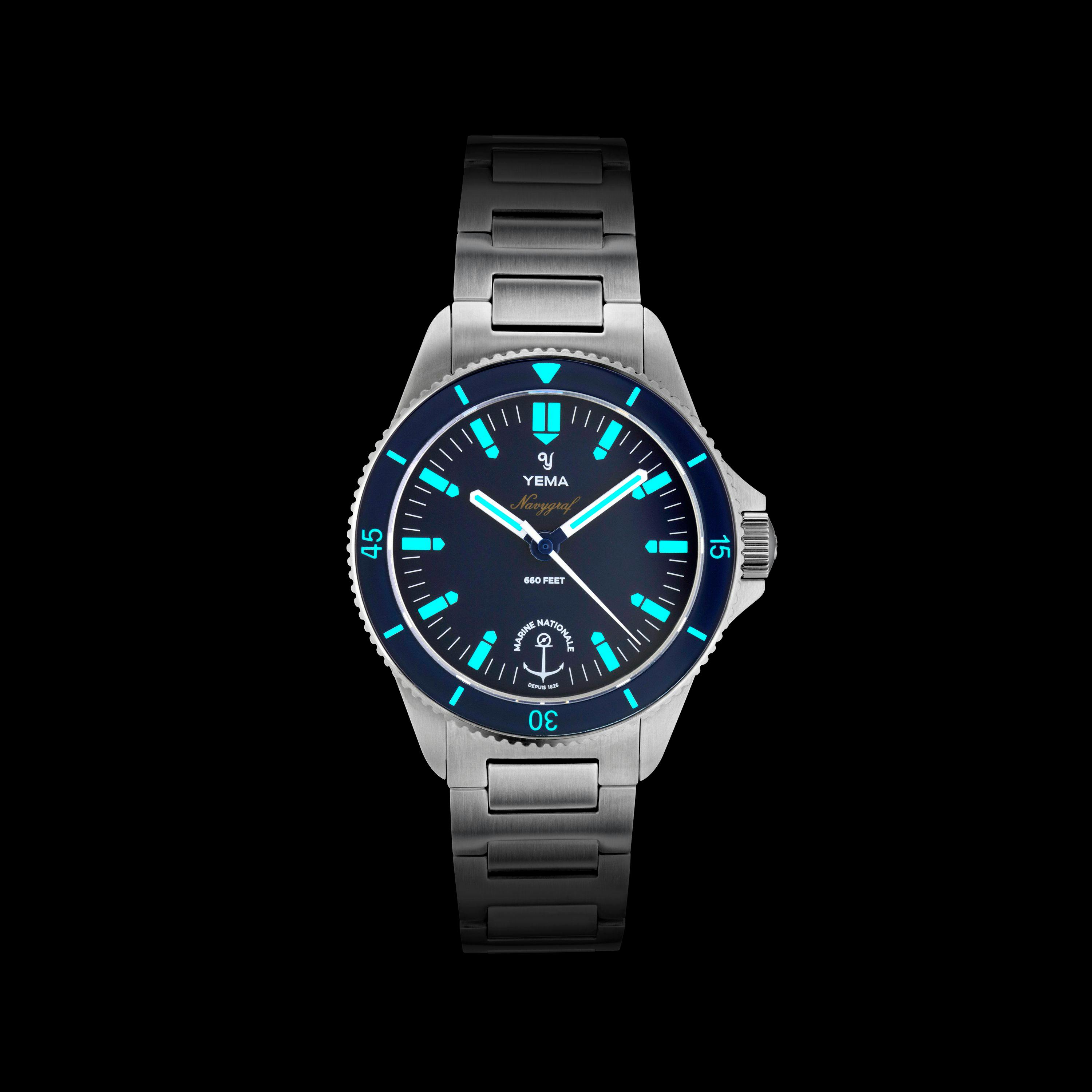 This sensational partnership between YEMA and the Marine Nationale has demonstrated both the beauty and performance of the Navygraf with strong vintage inspiration, impeccable French watchmaking and robust modern mechanics. Being the new official timepiece for the Marine Nationale, the Navygraf Marine Nationale perfectly forges a connection between two performance-driven organizations to create a solid dive watch offering that will go down in history.