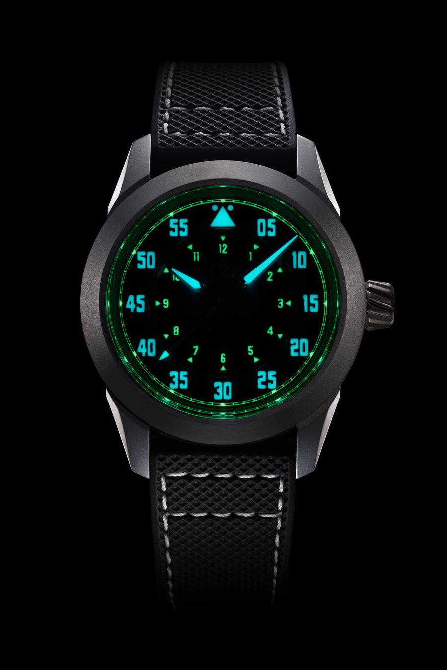 The Zelos Eagle 2 TI Teal is an exciting pilot's watch that is suitable for nearly any occasion. Zelos is renown for making watches with incredible value for money and impressive specifications. This reissue of the original Zelos Eagle is no different! Let's start with the basics: sapphire glass, 100m water resistance, a stunning double fumé teal dial with enamel coating, lightweight titanium case and a comfortable FKM Rubber strap with 20mm diameter at the case (lugs). Under the hood is a beautiful La Joux Perret G100 Soigné movement which has been Anthracite plated with a custom 'Turbine' rotor, visible through the display caseback.